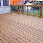 10 year old deck after prep and after 5th restain with TWP Cedartone. Good product.
