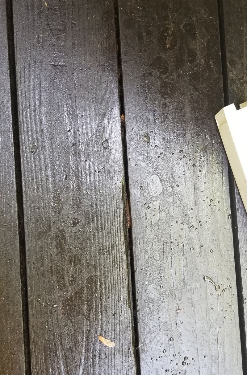 Here is a photo of the deck this morning- lots of water blotches but it’s not completely dry. Do I wait until completely dry and then send another photo? I’m so worried I will have to strip and re-do with my husband deployed ay yay yay!