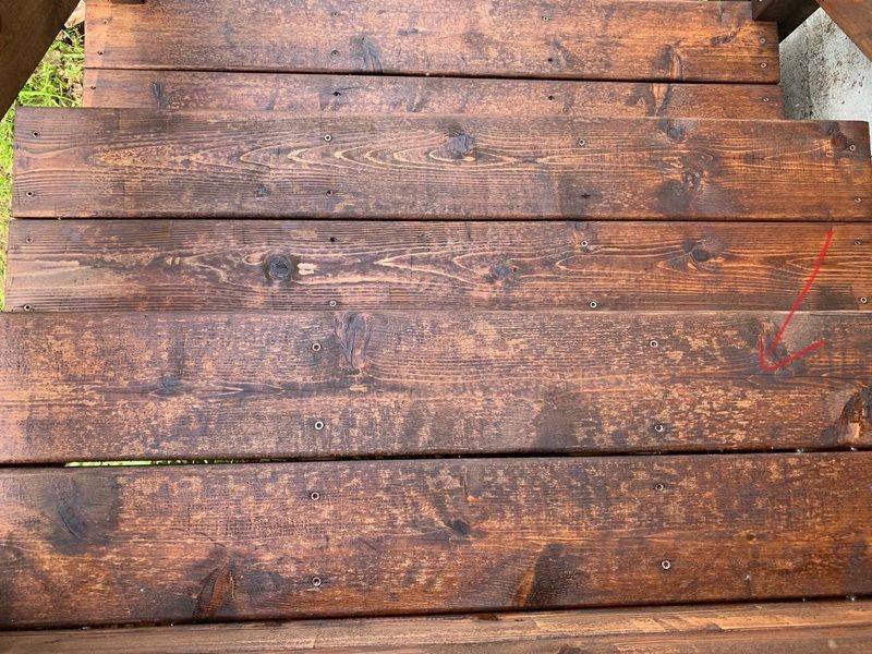 Year old PT Pine. Cleaned and prepped. Weather here, getting multiple dry days is a major challenge. No rain the past two days, but I’m racing the forecast (chance of rain late tomorrow evening) so started staining today at about 8:30 am. Using 1500 Black Walnut stain. At 9:30 am I’m about 2/3 done and have stopped. It’ll be 80’s and totally clear today and during the day tomorrow, and deck is entirely in direct sunlight.