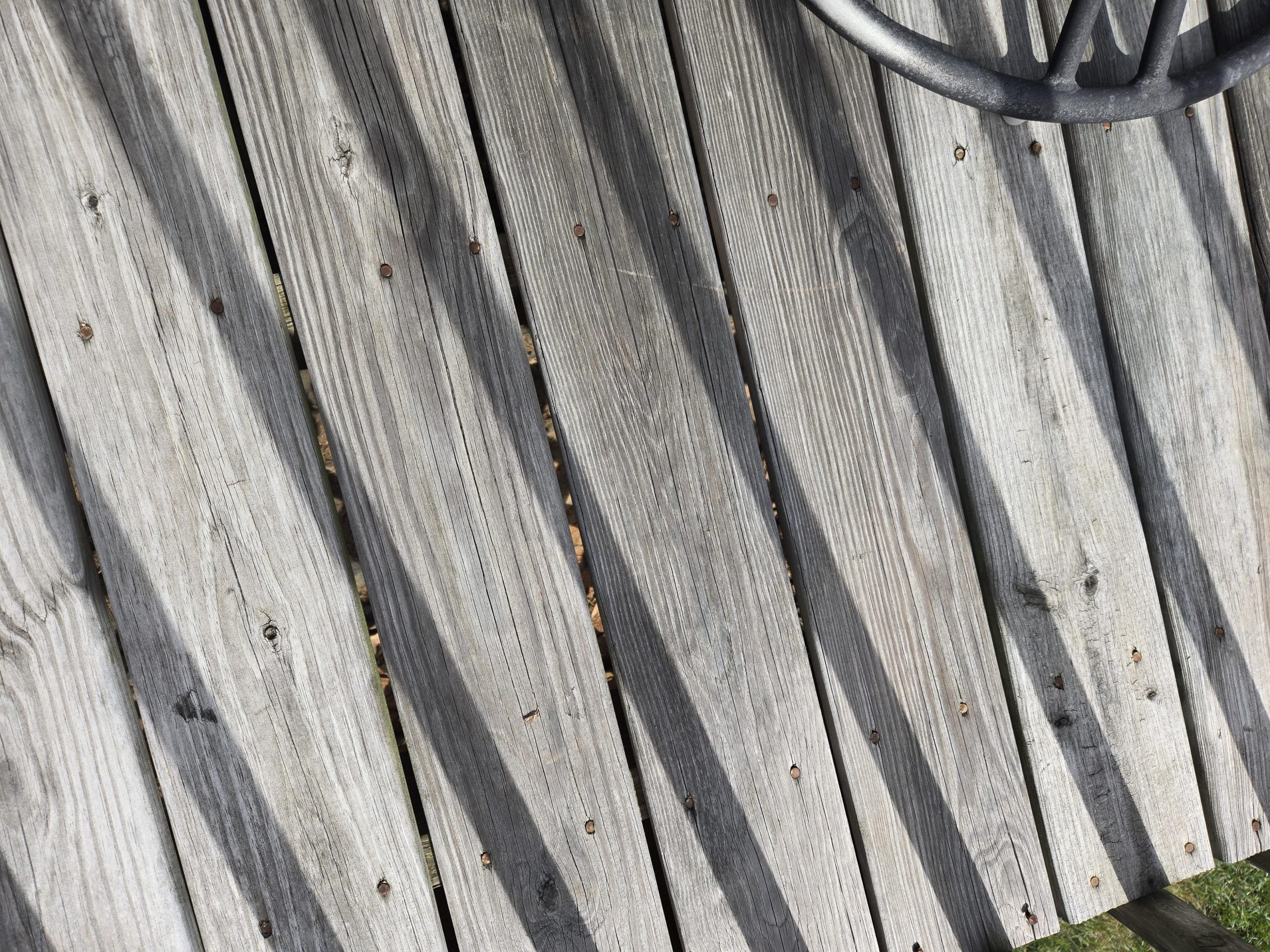 I believe the original owner/builder used some sort of bleaching oil or stain to get this weathered gray appearance.
